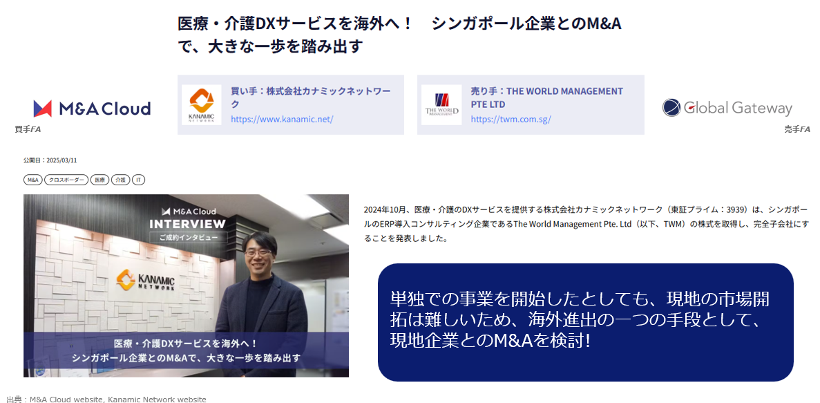 株式会社カナミックネットワークによるTHE WORLD MANAGEMENT PTE LTDの株式取得に際して売手アドバイザーとして支援