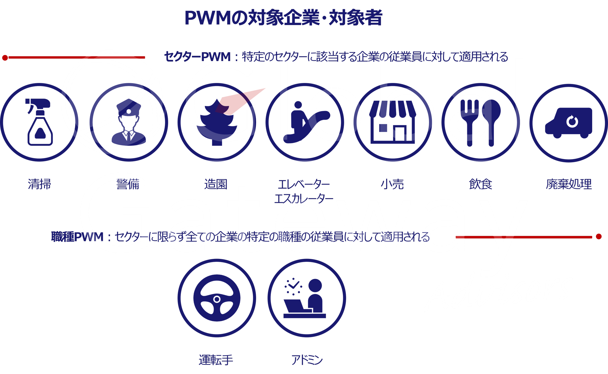 ※3 Sectoral PWs:Cleaning sector, Security sector, Landscape sector , Lift and escalator maintenance sector, Retail sector , Food services sector, Waste management sector